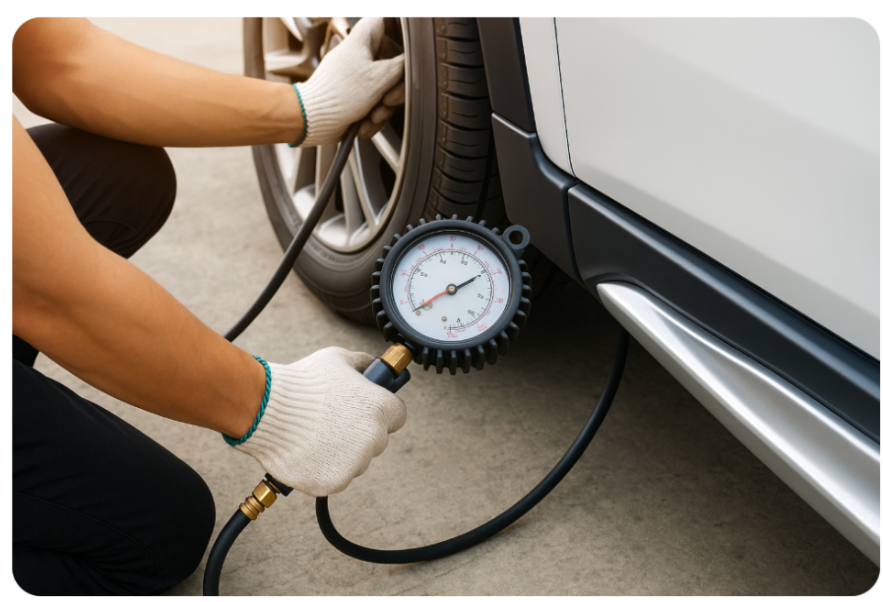 공기압이 부족하면 타이어 마찰이 커져 연료 소모가 증가하고, 제동 거리도 길어질 수 있습니다.