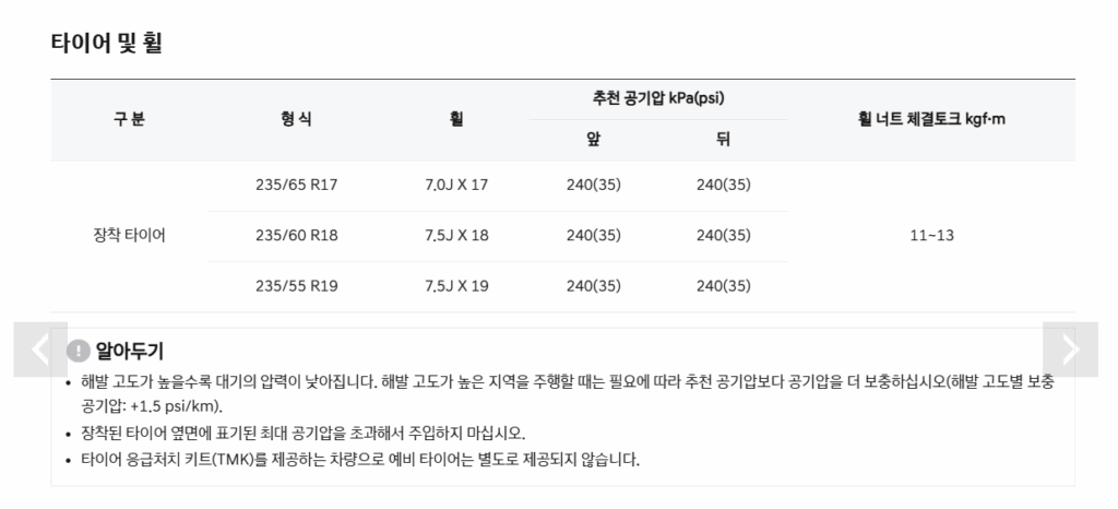 따라서 제조사 권장 공기압을 기준으로 정기적인 점검을 실시하고, TPMS 경고등이 점등될 경우 공기압 불균형뿐 아니라 센서 이상 여부도 함께 확인해야 합니다.