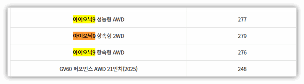 ※ 아이오닉9 항속형 익스클루시브 모델은 약 6,900만원으로, 국고 보조금 279만원을 수령 받을 수 있는 가격대에 속합니다.