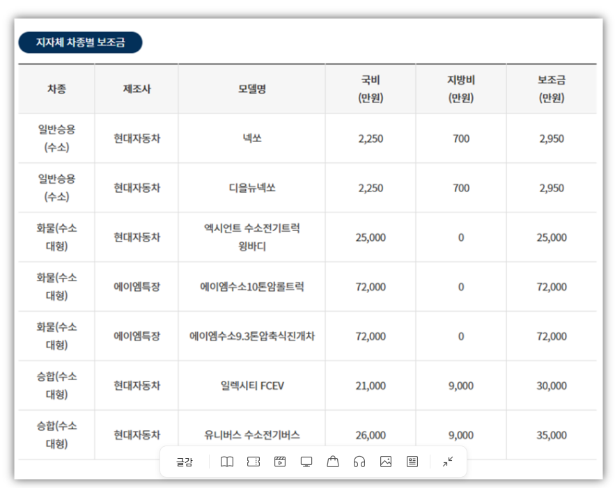 참고 지자체 수소차 보조금 확인 방법