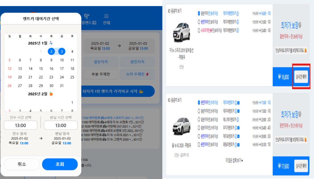 돌하루팡 렌트카 예약 방법 (PC & 모바일)