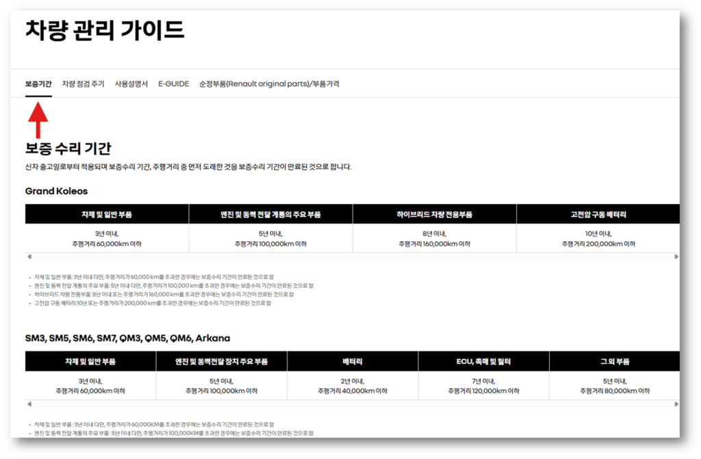 르노삼성자동차의 보증기간은 모델별로 다르게 적용되기 때문에, 정확한 보증 여부를 알기 위해서는 아래 절차를 통해 직접 확인하는 것이 가장 확실합니다.
