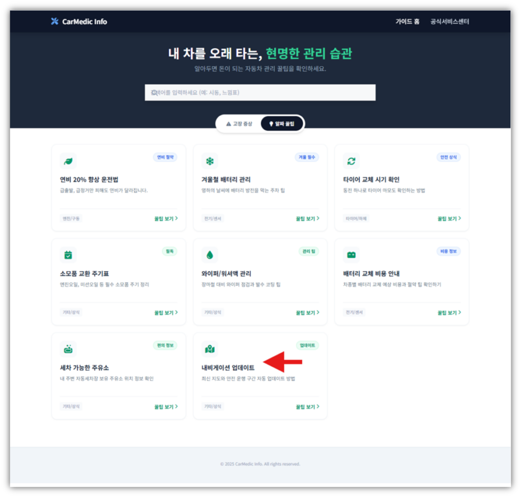 ② 인터넷 연결 상태를 점검하고, 내비게이션 소프트웨어를 최신 버전으로 업데이트합니다.
