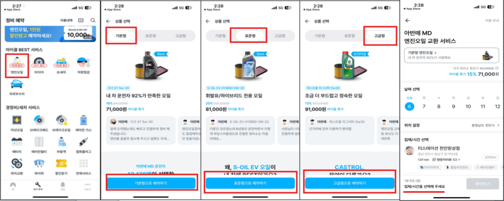 2. 적합한 제품 추천과 함께 정비소 예약도 가능해 편리합니다.