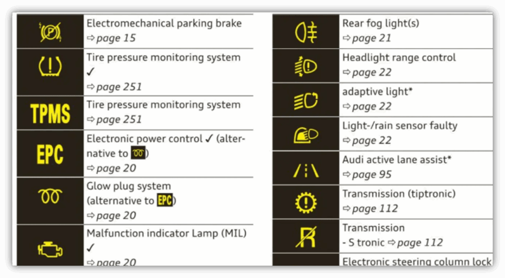 아우디 A3 주요 느낌표 경고등 원인 및 조치방법