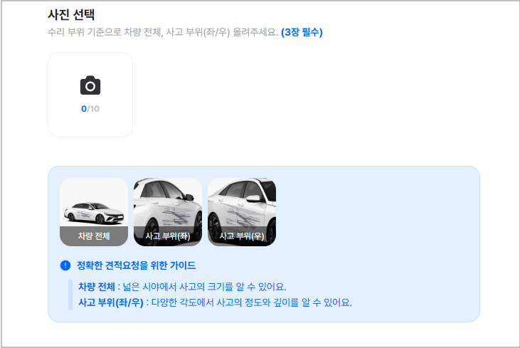 3. 사고 부위 사진 3장을 등록합니다. (3장 필수 등록)