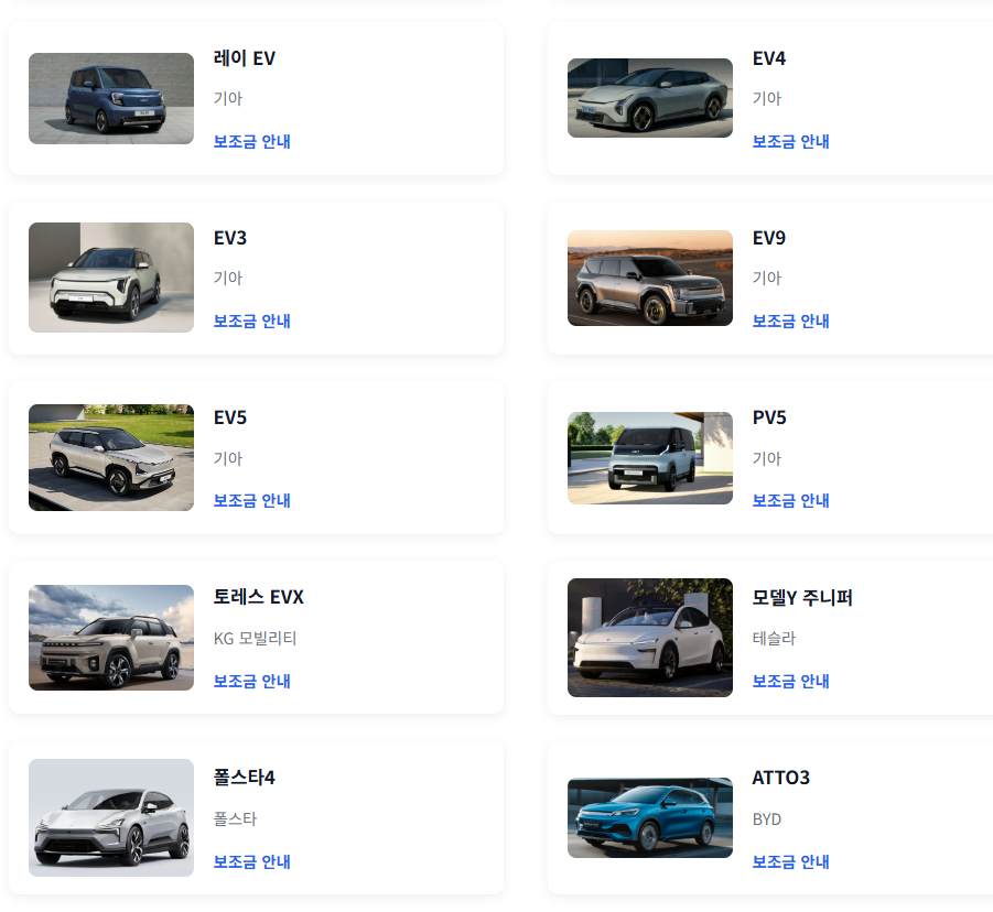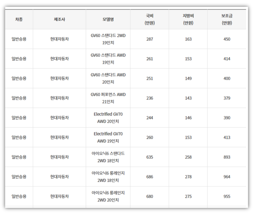 2. 차량 모델별 국비(국고보조금) 및 지방비(지자체 보조금) 확인