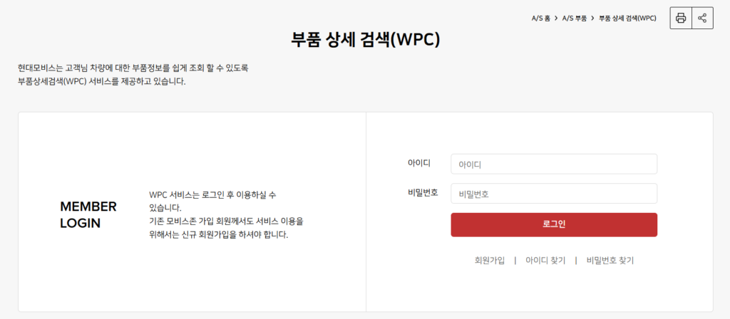 현대 자동차 WPC 부품 상세검색 카테고리 가입 부터 물품 구매 방법까지 총정리