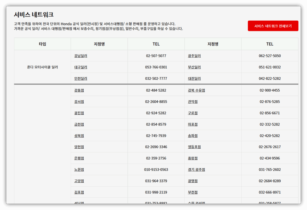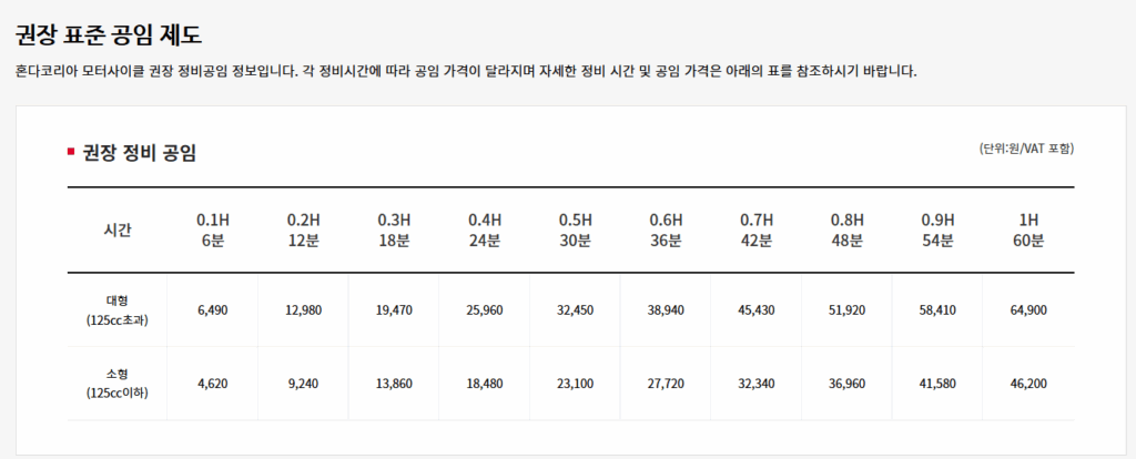 혼다 공식 서비스센터 공임비는 전국 어디서나 동일하게 적용되며, 투명하게 공개되고 있습니다.