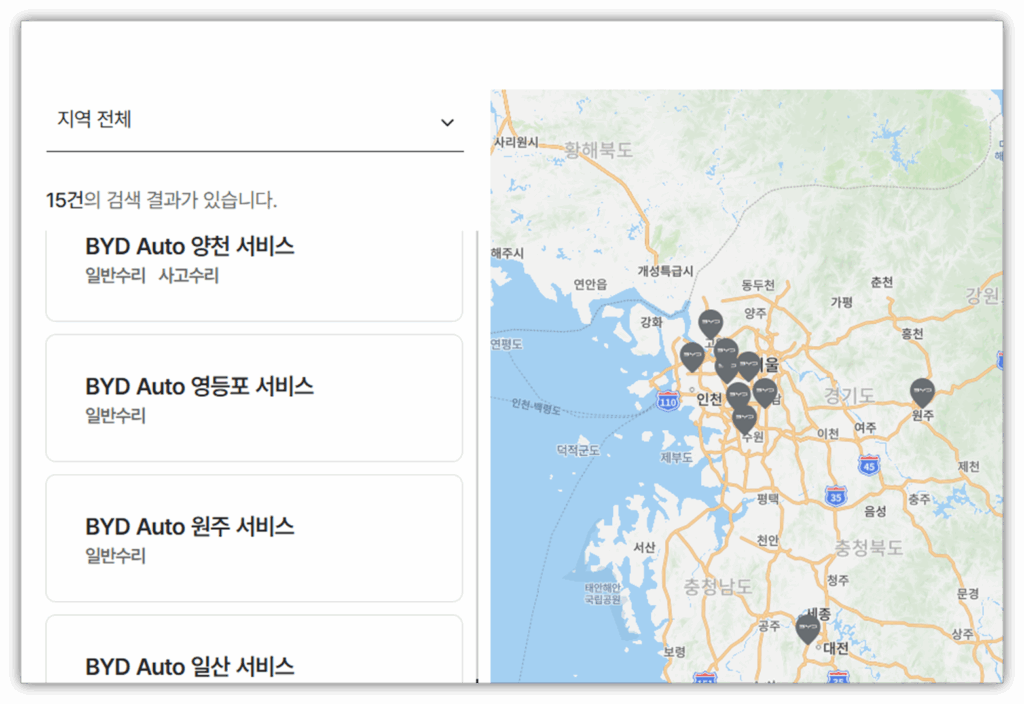 현재 BYD는 국내 주요 거점에 AS 서비스센터를 운영하고 있으며, 차량 점검·소모품 교체·소프트웨어 업데이트 등을 지원하고 있습니다.