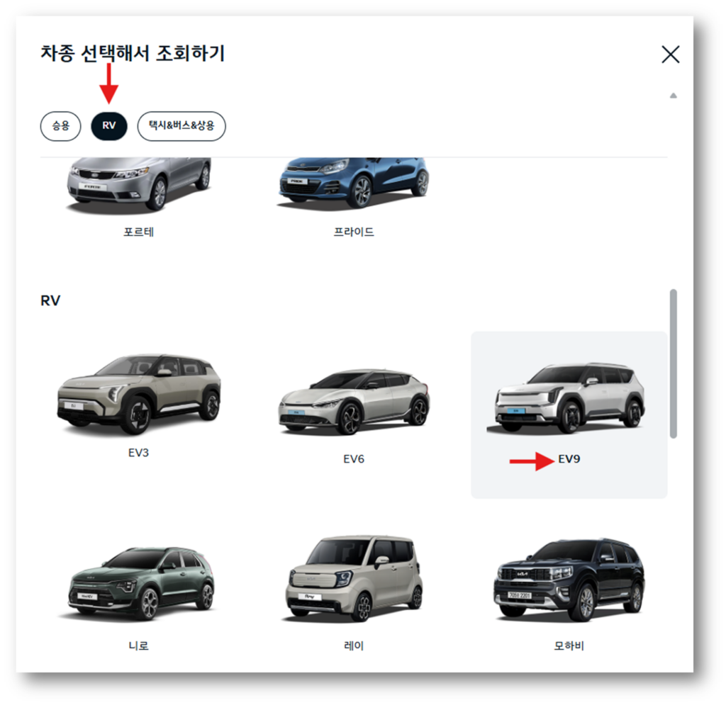 3. EV9 연식을 선택 합니다.