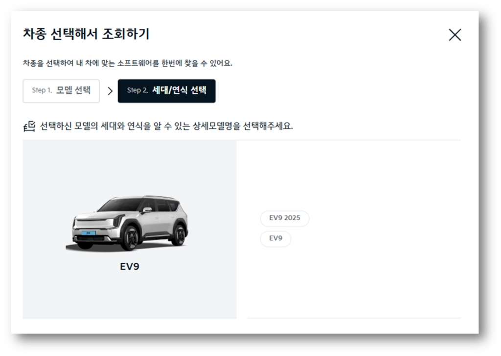 2. EV9 차량을 선택 후 다음을 클릭합니다.