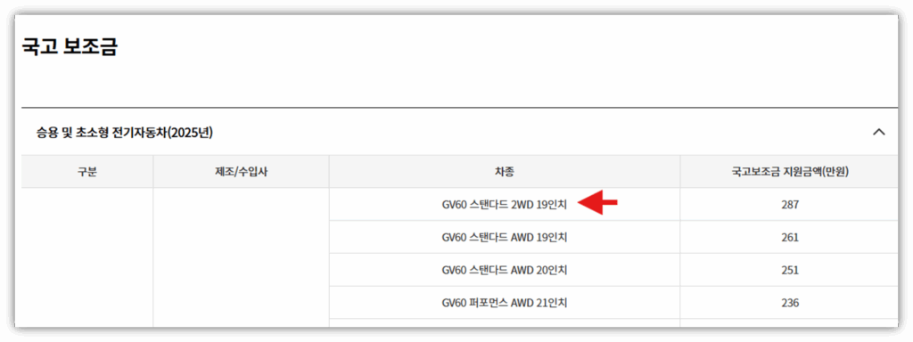 ※GV60 약 6,490만원으로, 국고 보조금 287만원 수령이 가능한 가격대에 속합니다.