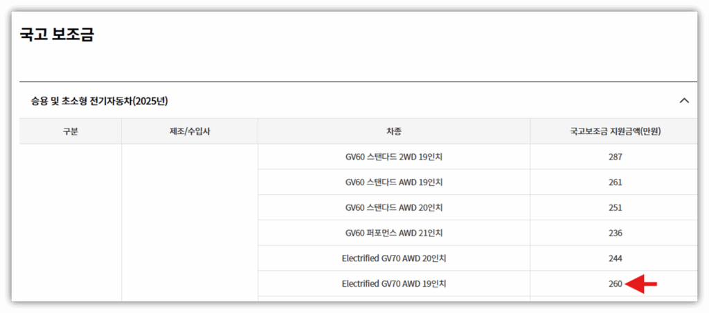 ※GV70는 약 7,300만원으로, 국고 보조금 260만원 수령이 가능한 가격대에 속합니다.