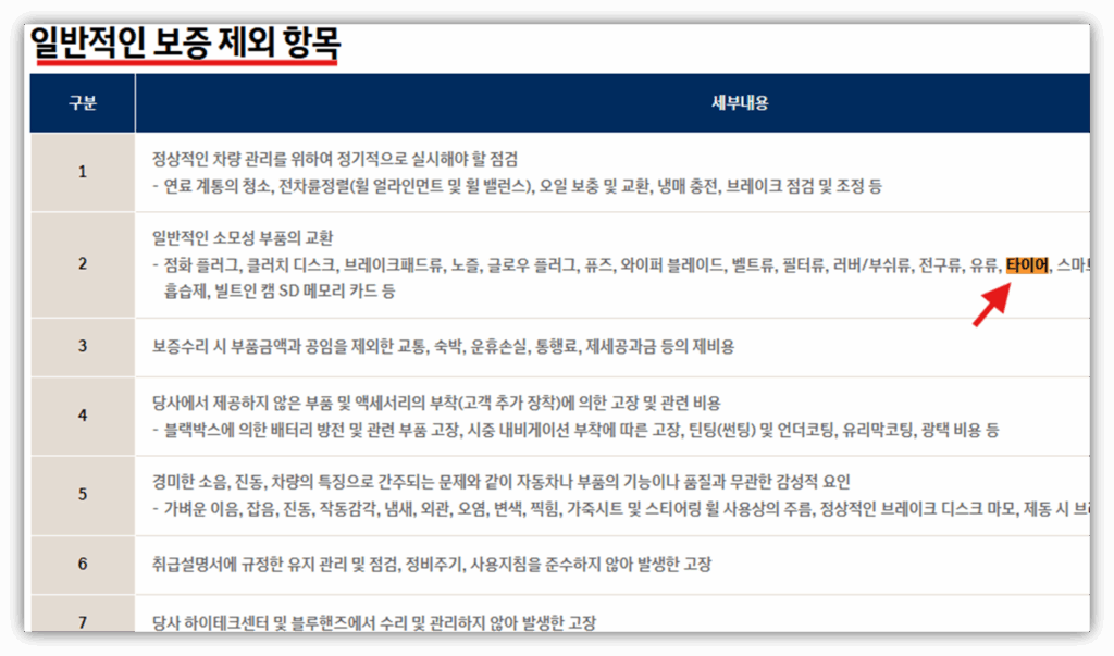 타이어 교환은 일반적인 보증 혜택을 받으실 수 없습니다.