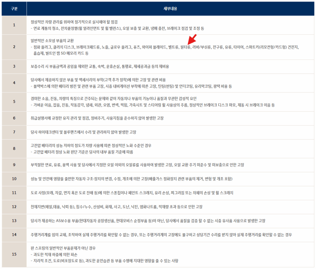 에어컨필터는 소모품에 해당하기 때문에 일반적인 차량 보증 항목에는 포함되지 않습니다.