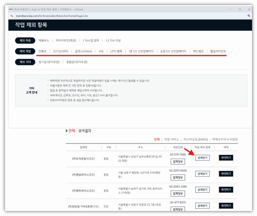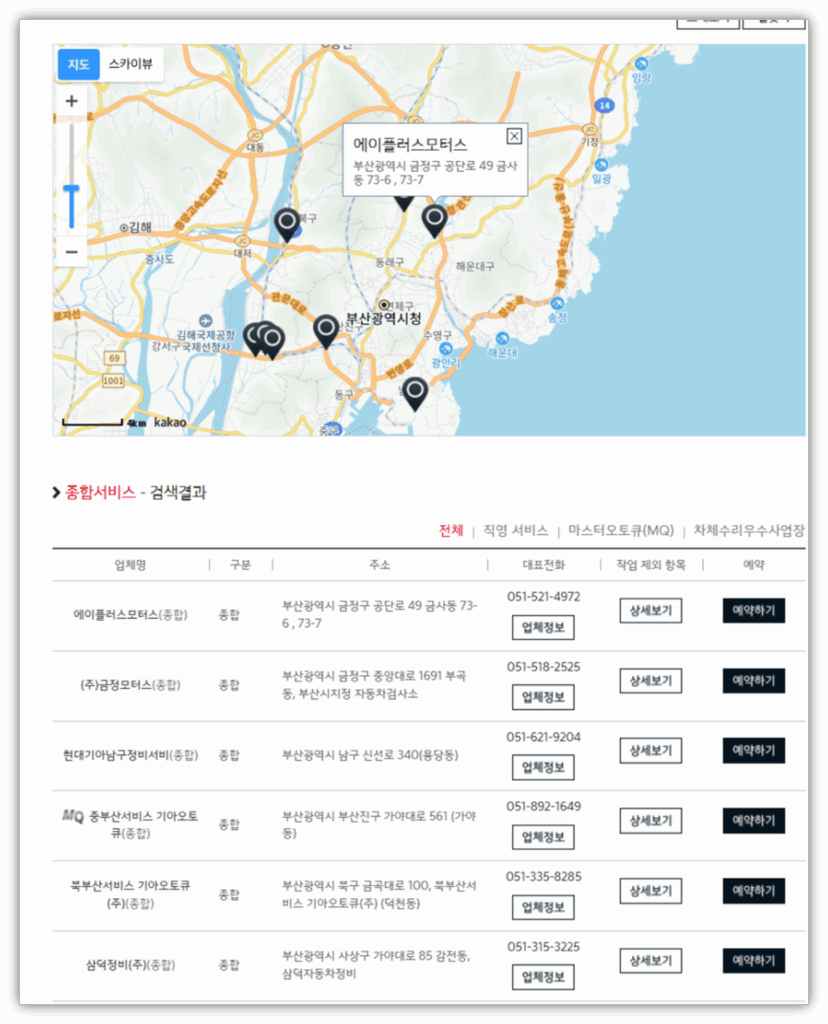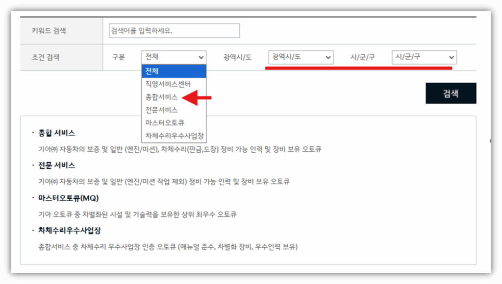도색 및 교체 작업은 종합 정비 서비스센터에서만 진행할 수 있으므로, 아래 방법을 통해 거주 지역 내 도색·교체가 가능한 기아오토큐 종합서비스센터를 확인해 보시길 권장드립니다.